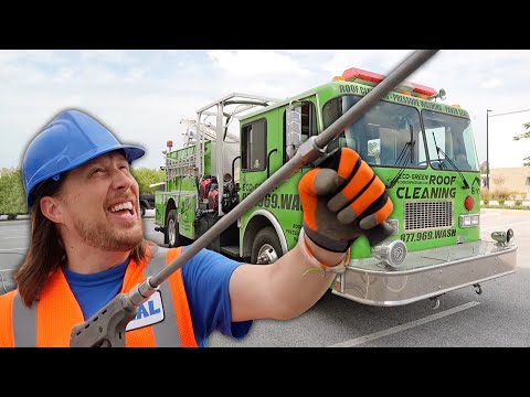 Fire Washing Truck | Handyman Hal uses a Fire Truck to Pressure Wash | Awesome Trucks for Kids