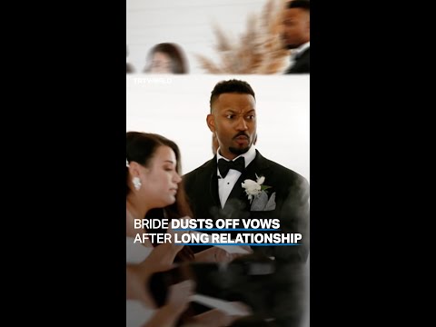 Bride blows dust off of vows