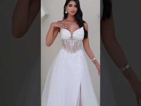 How To And Style: Elegant White Bridal Gown with Sheer Corset and Floral Embroidery