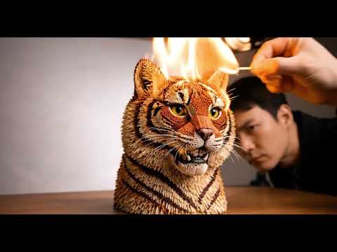 Burning Matchstick Tiger π₯π Made of 35,000 Matchsticks #shorts #ai