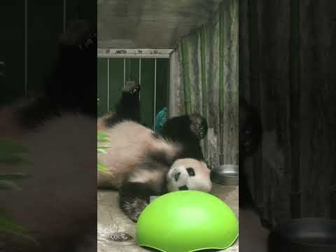 Baby panda sneeze and scares his mom. 🐼