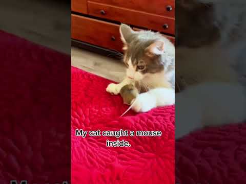 Cat catches a mouse, freaks out owner 😂😂😂