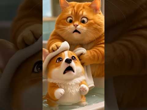 Monkey Splashes the Corgiβ¦ But Orange Cat Gets the Last Laugh! π¦π#corgi #funny #monkey #cartoon #cat