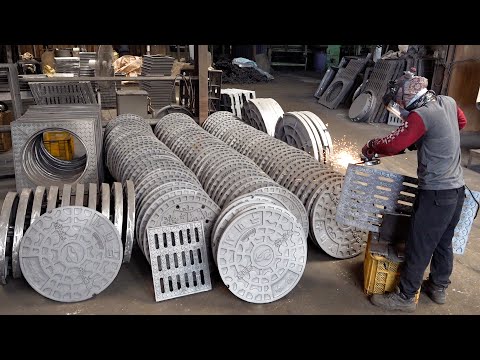 Manhole Cover Mass Production Process. Cast Iron Factory in Korea
