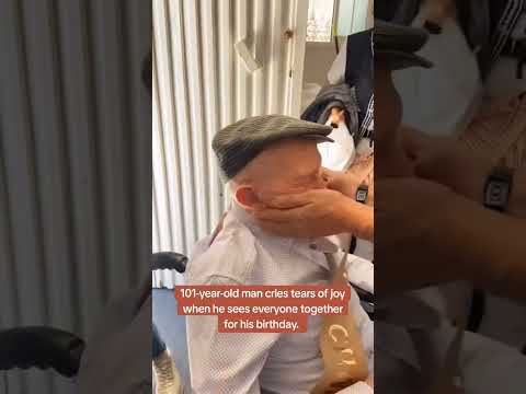 101-year-old man cries tears of joy when he sees everyone together for his birthday.