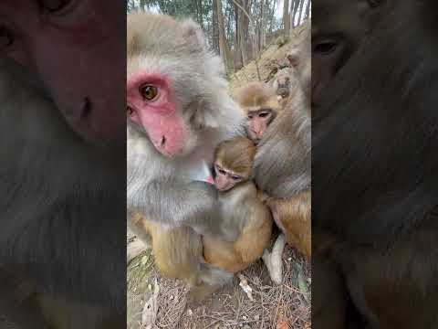 The monkey's mother is watching over him#monkey #monkeybaby #newvideo #newshorts
