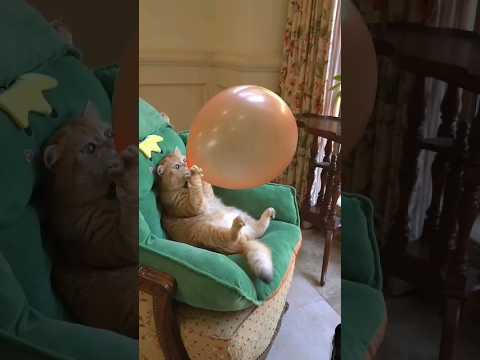 cute cats blowing balloons and babyes ‼️ #shorts #baby #cat #funny #fyp #cutebaby