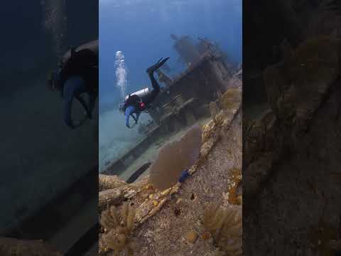Divers explore overgrown wreck near Nassau, Bahamas #shorts #diving #underwater