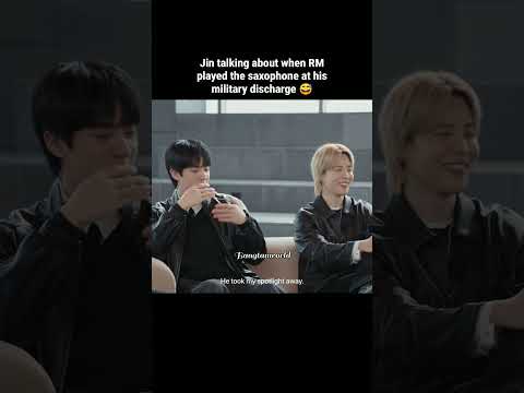 Jin talking about when RM played the saxophone at his military discharge! 😅....