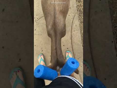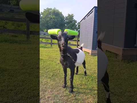 Pool noodles on a goat horn! Followers on TikTok @RyleeRanch