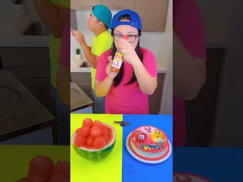 M&M's cake vs watermelon ice cream challenge! 🍨 #funny #shorts by Ethan Funny Family