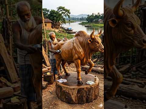 Powerful Bull Wooden Sculpture 🐂Hand Carving Masterpiece! #bull#woodcarving #woodart #woodsculpture