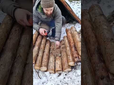 The fire feeder system that will keep you warm throughout the night 🔥#bushcraft #diy