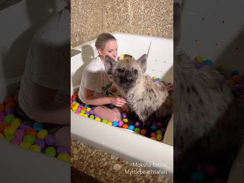 Enrichment day! I gave my hyena a colorful #easteregg bath. #hyena #animalenrichment #shorts #egg
