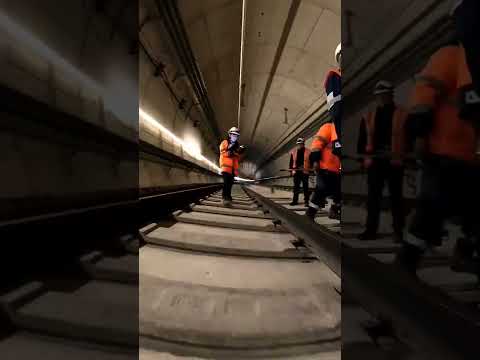 La pose de rails dans le tunnel de la ligne 15 Sud