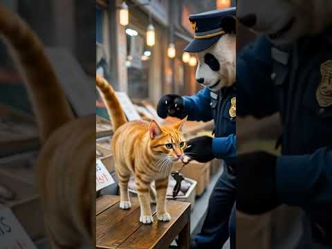 Part 2 Police panda catches the thief cat #cutepanda#panda#cat#police#shorts