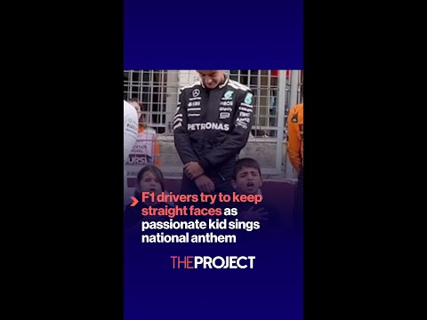F1 drivers try to keep straight faces as passionate kid sings national anthem