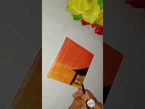 Easy mini canvas painting π¨ποΈ#shorts #acrylicpainting #canvas #artshorts