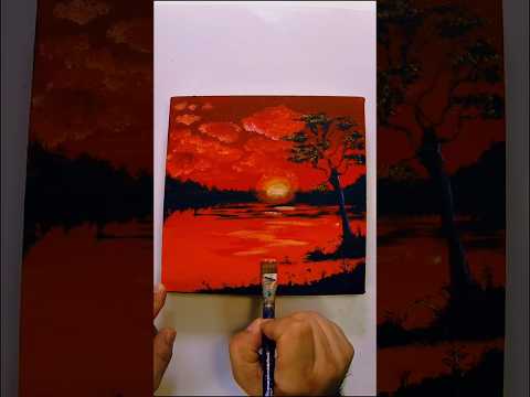 Amazing Crimson Sunset, Mini Paint. π | Art (WOW) Landscape #easypaint #art #paintingprocess