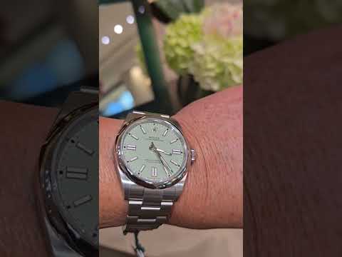 Tried on the new Pistachio Dial Rolex OP 41 — absolutely stunning! 💚 #rolex #op41 #pistachiodial