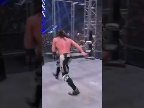 Kenny Omega V-triggers Jon Moxley Through the Steel Cage - Jon Moxley vs Kenny Omega Steel Cage
