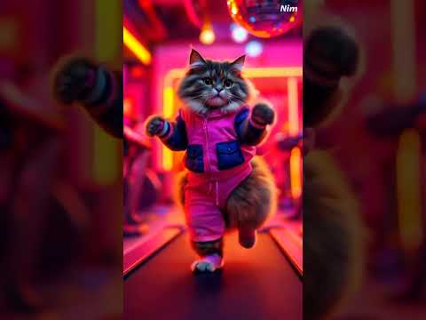 Chubby Cat Hits the Gym in 80s Aerobics Style | Feline Fitness Flashback! #aicat #animalshorts #cat
