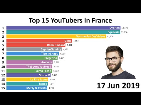 Top 15 Most Subscribed YouTubers in France (2012-2019)