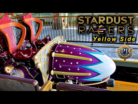 2025 Stardust Racers Roller Coaster Yellow Side On Ride 4K POV Universal Epic Universe