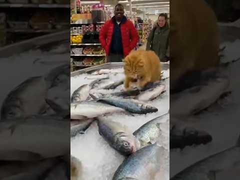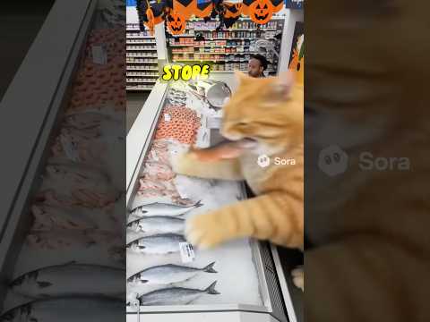Giant Obese Cat Steals Fish In Walmart #sora2 #cat #fatcat #orangecat #ai