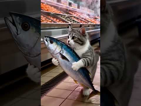 The cat is stealing and eating fish #foryou #shortvideo #trending #ai #aishorts
