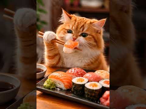 Chubby Orange Tabby Cat Eating Sushi 🍣 | Funny Shorts #cat #aicat