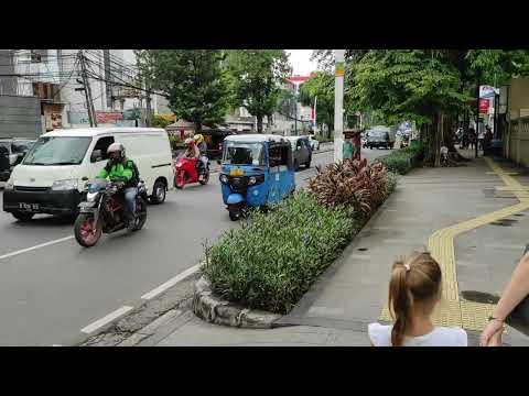 Street walking Jakarta Indonesia, TukTuk, Car Traffic
