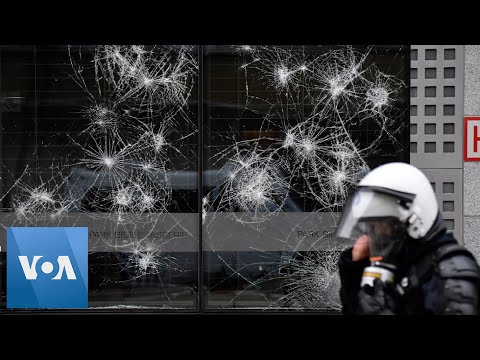 Raw: Belgian Protesters Clash With Police
