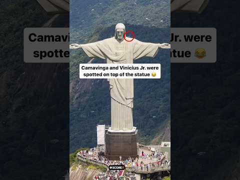 Camavinga and Vinicius on top of statue of Jesus in Brazil #shorts #footballshorts #realmadrid
