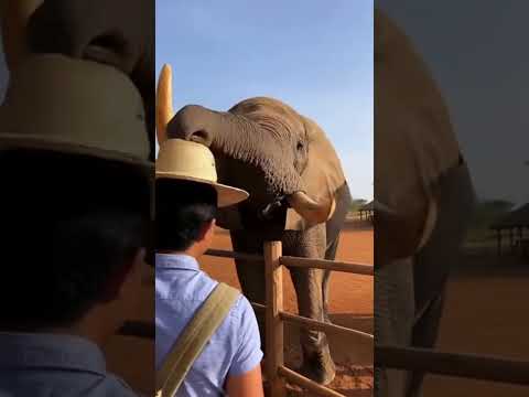 ELEPHANT STEALS HAT! Man's Desperate Attempt to Get it Back! #gensmile #viralshorts #wildanimals