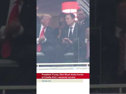 President Trump and Elon Musk shake hands at Charlie Kirk's memorial
