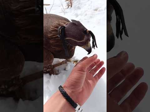 Golden Eagle Hood Off Reaction in the Snow 🦅❄️