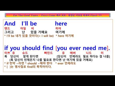 For The Good Times Perry Como, 베게에 머리를 뉘고 비의 속삭임을 ~, 좋았던 시절을 위하여, 뽀 더 굿 타임즈 가사 해석, 페리코모, 팝송풀이 노래방