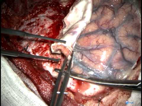 Left pterional craniotomy for thrombectomy and clipping of ruptured left MCA giant aneurysm