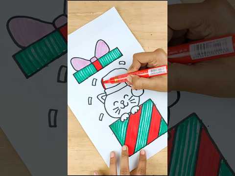 Christmas Drawing | Folding Surprise Drawing Easy Kids | Cute Christmas Kitty Draw