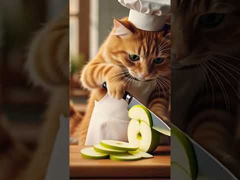 Cat Teaches you How to cut apple | Creative Food Ideas | Cat Cooking #shorts #ai #asmrsounds #asmr