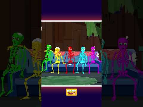 Teehee Town - Five Funny Skeletons Jumping on the bed #shortsfeed #nurseryrhymes #skeletons