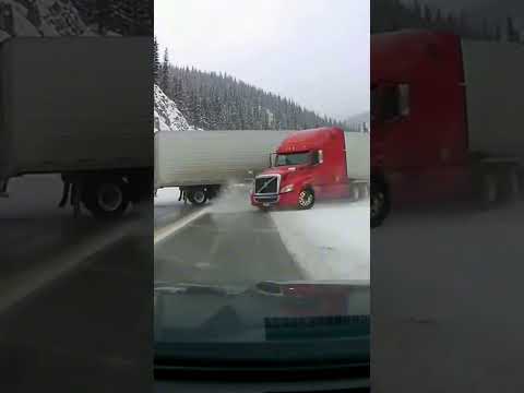 Jackknifing Semi Blocks Icy Road in Close Call