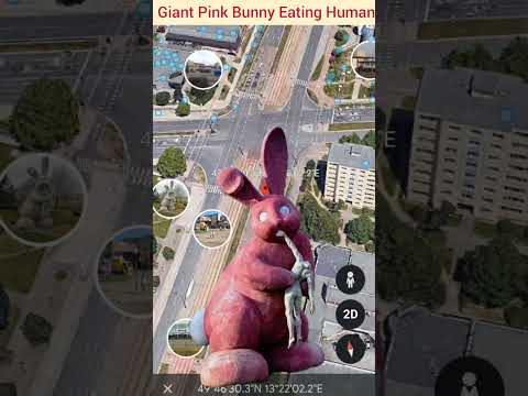 Giant Pink Bunny Eating Human Sculpture on Google Earth #shorts