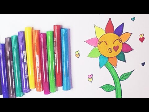 Cómo dibujar y colorear una flor y un corazón de arcoíris para niños fácil y divertido.
