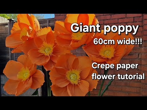 Giant crepe paper poppy 🧡 DIY tutorial How to make large crepe paper flower decorations
