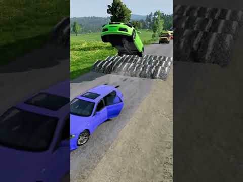 🚗💥 Big & Small Cars vs LARG Speed Bumps | BeamNG.drive #shorts