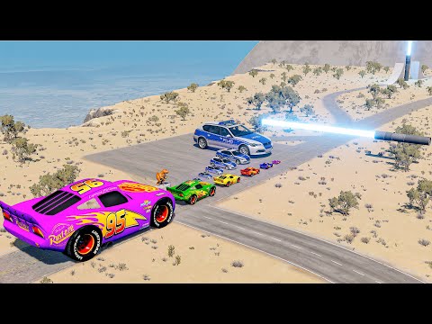 Big & Small Lightning McQueen, Police Car Vs Laser|BeamNG drive