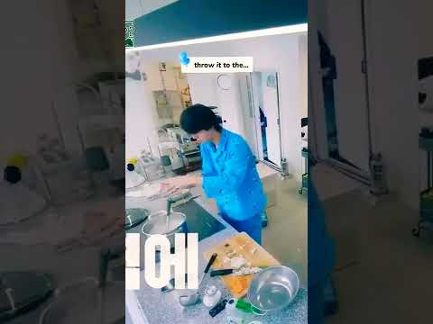 Jin was showing unique method to check if noodles are cooked🤣😝😂