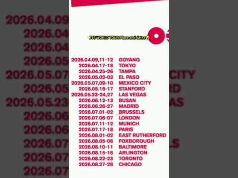 BTS world tour concert 2026 places and dates. More places are yet to be announced.๐ญ๐ญ #btsarmy #bts